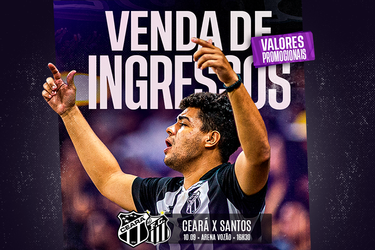 Ao lado da torcida, o Ceará encara o Santos dentro da Arena Vozão, no próximo sábado (10), às 16h30, pela 26ª rodada do Brasileirão. Com preços promocionais e desconto especial no setor superior norte, a Nação Alvinegra pode adquirir o ingresso para o duelo em uma das lojas oficiais do Vozão ou no site da Vozão Tickets.