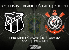 Ceará x Corinthians é válido pela 35ª rodada do Campeonato Brasileiro Série A 2011. Vá ao estádio, torcedor. O Vozão precisa do seu apoio nas arquibancadas. Seja mais um soldado nesta luta e prove que leva o Ceará no coração. Contamos com o apoio de todos.