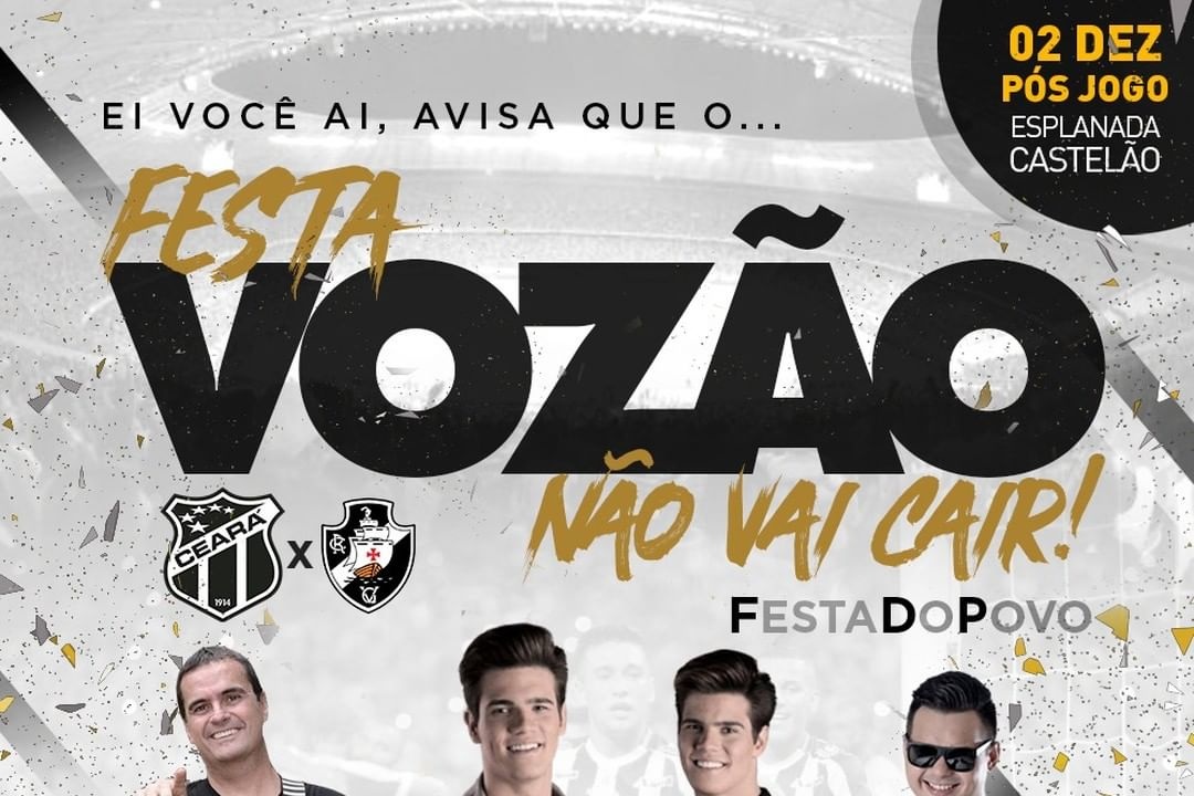 Festa “Vozão Não Vai Cair” promete agitar torcedor após jogo entre Ceará e Vasco