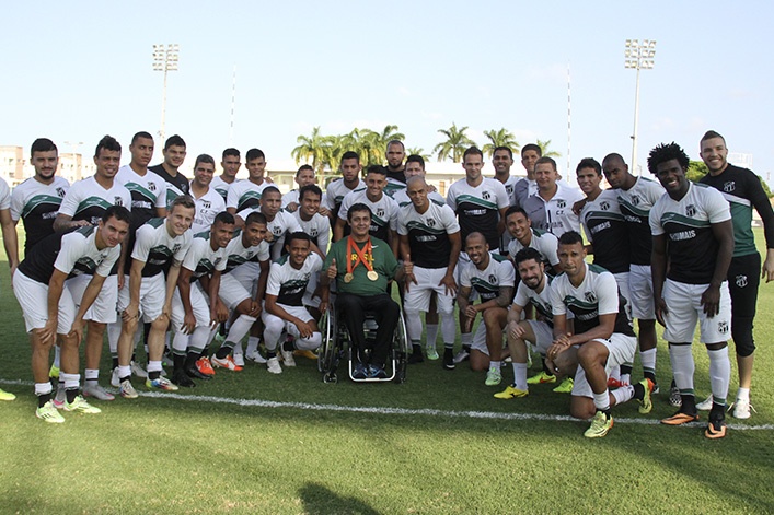 Além de conhecer todas as instalações do Ceará Sporting Club, David Freitas teve a chance de fazer amizade com o elenco alvinegro. O mesa-tenista também registrou o momento com uma bela foto no Estádio Carlos de Alencar Pinto (Vovozão) e teve a oportunidade de conversar com os guerreiros do Vozão.