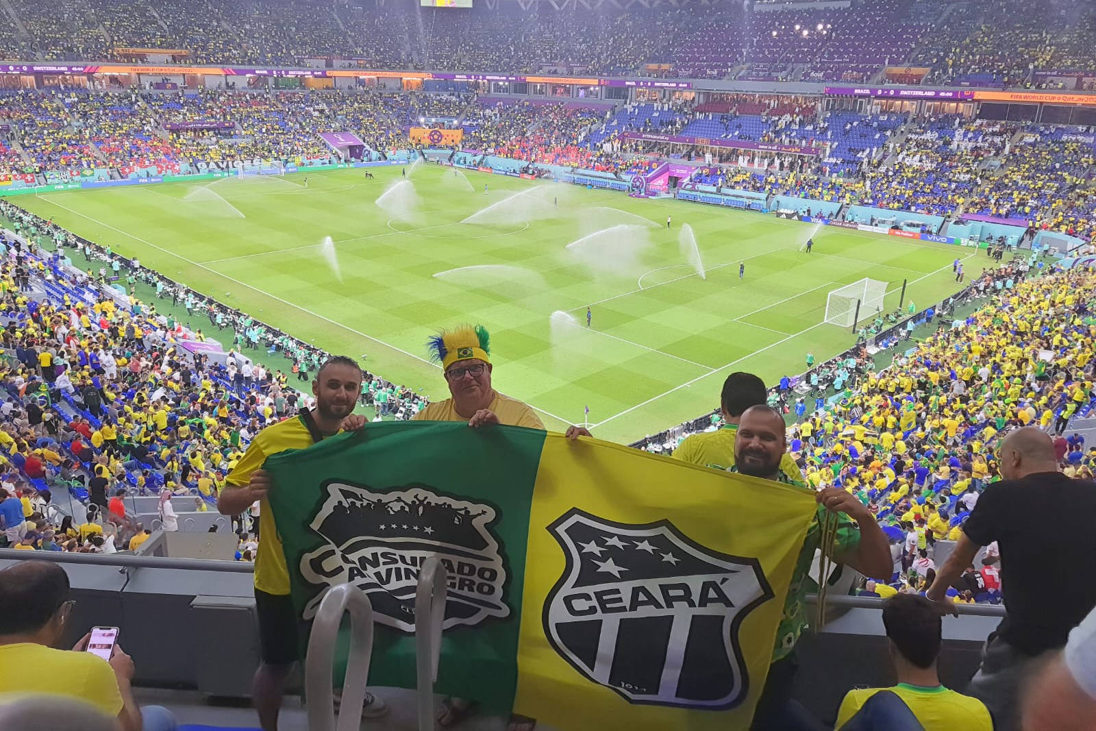“Com relação a Copa do Mundo, isso também foi uma coisa que herdei do meu pai. Considerando a atual edição e contando com a de 2014, realizada no Brasil, é terceira copa que estou presente. Na edição passada, na Rússia, consegui ir junto com alguns amigos e teve um jogo, acredito que Brasil e Sérvia ainda pela fase de grupos, que dei sorte ao ficar atrás de um dos gols e consegui colocar uma bandeira do Ceará. Na Copa atual, preferi trazer uma bandeira maior e contendo os escudos do consulado e do Vozão. Então, a estou levando para tudo que é lugar. É isso, sempre que eu puder divulgar o nome do Ceará, eu farei”, comentou.
