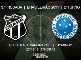 Começa amanhã, a partir das 10 horas (horário da capital cearense), a venda de ingressos para o confronto entre Ceará x Cruzeiro, válido pela 37ª rodada do Campeonato Brasileiro Série A 2011. Os ingressos estarão disponíveis nas lojas oficiais do Ceará e nas sedes das torcidas organizadas.