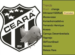Durante o jogo realizado na noite de ontem, as expressões #boravozao, Marcelo Nicácio, Fernando Henrique, #ceara, Geraldo e Carroça Desembestada ficaram entre os dez termos mais citados pelos usuários do twitter, mostrando a força do torcedor alvinegro nas redes sociais.